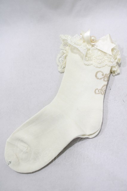 Angelic Pretty / プリンセスロゴクルー丈ソックス アイボリー H-25-01-27-072-AP-ZA-NS-ZH