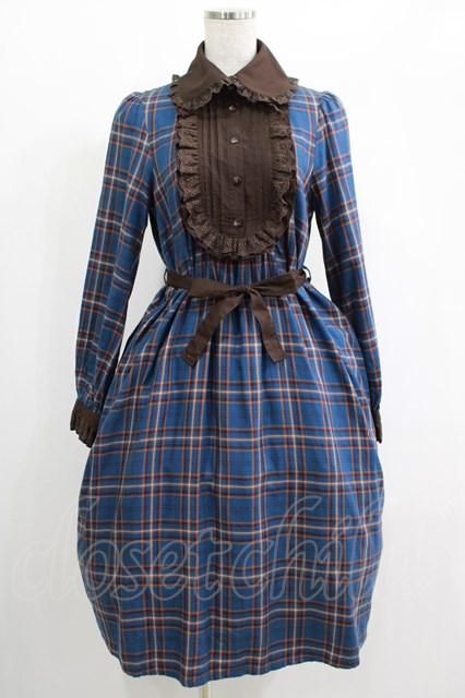 Innocent World / オリアナチェックワンピース M101cm丈 ブルー H-25-01-28-020-IW-OP-NS-ZH