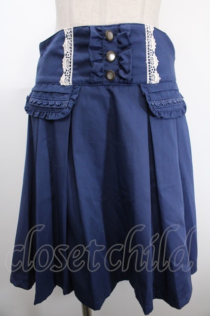 axes femme / サス付きハイウエストスカート 紺 Y-25-01-16-138-AX-SK-SZ-OS