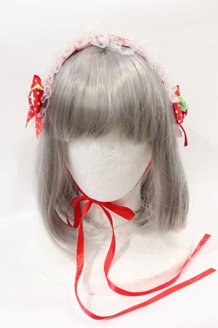 Nile Perch / ギンガムチェックいちごリボンヘッドドレス 赤X白 I-25-01-16-016-LO-AC-HD-ZI