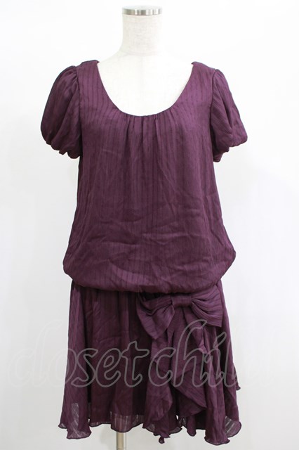 axes femme / ストライプリボンワンピース M パープル H-25-02-06-037-AX-OP-NS-ZH
