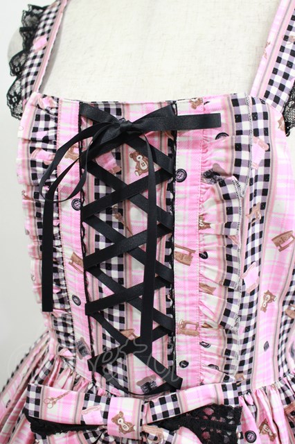 【プラスサイズ】Happy Sewing Time / フリルジャンパースカート+ヘッドドレスセット プラスサイズ ピンク黒系(Pink/Black) H-25-02-06-017-GO-OP-NS-ZH