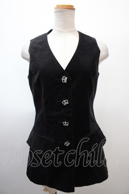 MIHO MATSUDA / 王冠刺繍ボタンベスト M 黒 Y-25-01-23-002-GO-TO-SZ-ZY