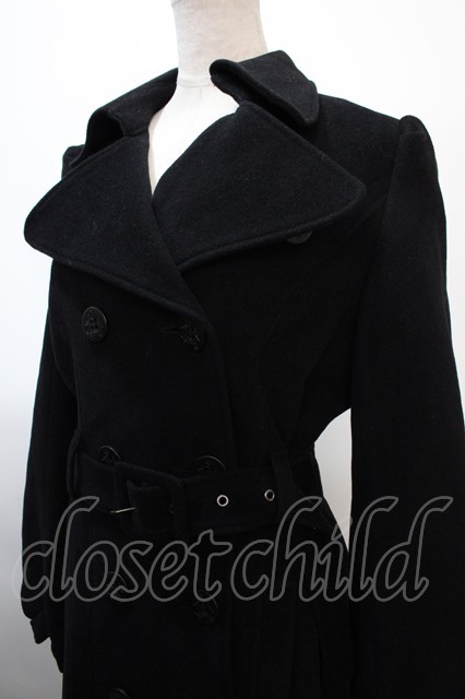 MIHO MATSUDA / ベルト付きWボタンコート M 黒 Y-25-01-23-118-GO-CO-SZ-ZT-C061