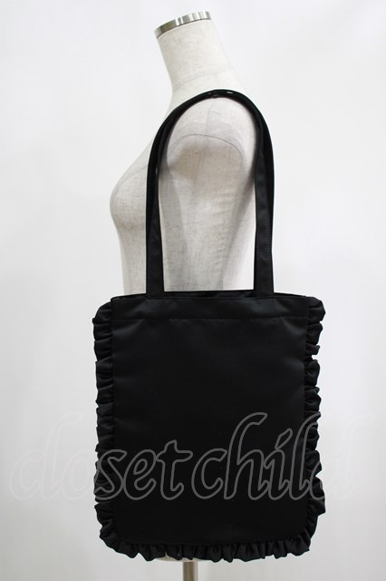Maison de FLEUR / EC限定フリルサテントートバッグ ブラック H-25-02-09-051-LO-BG-NS-ZH