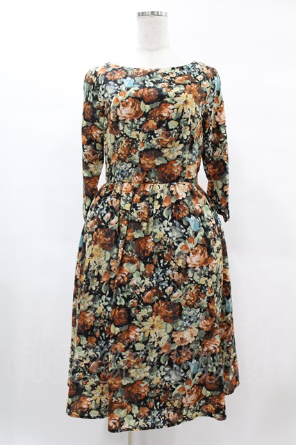 an another angelus / 絵画タッチ花柄ワンピース Free BLACK H-25-02-10-1020-CA-OP-NS-ZH