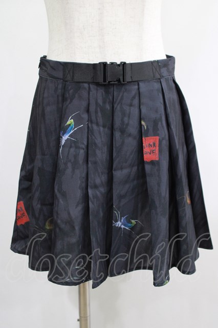 PUNK RAVE / Black printed pleated skirt S ブラック H-25-02-13-033-PU-SK-KB-ZS