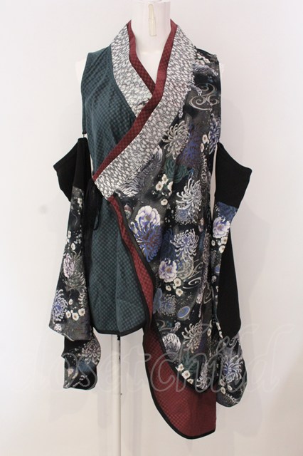 Qutie Frash / 袖セパレート着物カーデ ブラック×グリーン×ワイン O-25-03-20-1015-QU-TO-IG-ZY