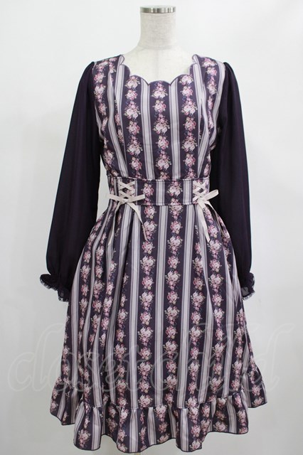 axes femme POETIQUE / ローズストライプ長袖ワンピース M パープル H-25-02-16-029-AX-OP-NS-ZH