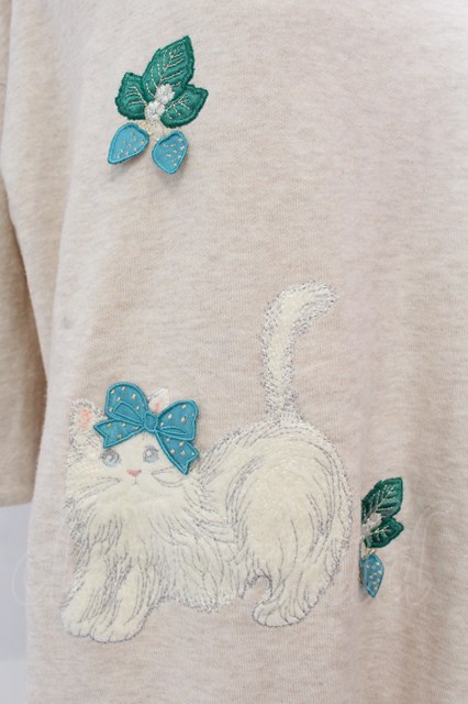 Franche Lippee / 白猫いちご刺繍カットワンピース ベージュ O-25-03-20-2008-LO-OP-IG-ZT192