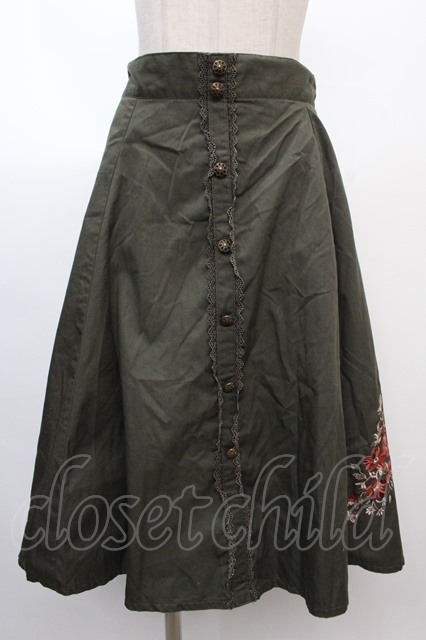 axes femme / 刺繍入りカラースカート M カーキ Y-25-02-05-010-AX-SK-SZ-ZS