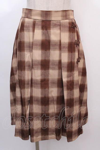axes femme POETIQUE / チャイナボタンチェックプリーツスカート M キャメル Y-25-02-05-048-AX-SK-SZ-ZT175