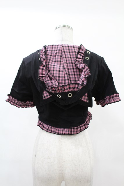 DARK IN LOVE / Gothic lolita pink plaid cat ear hoody cape S ブラック×ピンク H-25-02-21-1042-PU-TO-KB-ZY