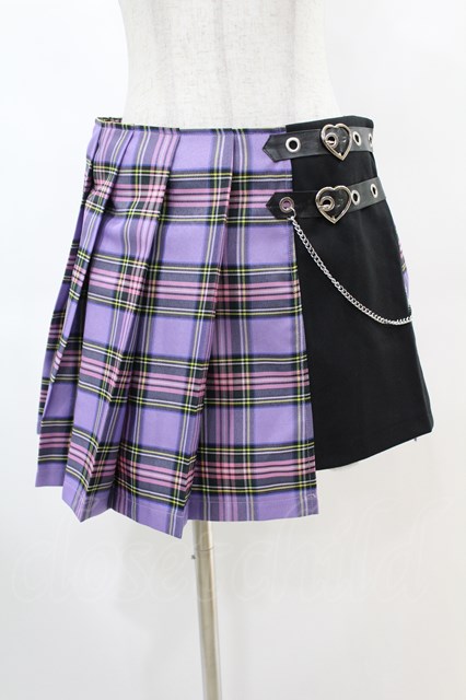 DARK IN LOVE / Punk purple checked splicing black pleated skirt M パープル×ブラック H-25-02-22-1006-PU-SK-KB-OS