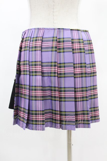 DARK IN LOVE / Punk purple checked splicing black pleated skirt S パープル×ブラック H-25-02-24-1002-PU-SK-KB-ZS