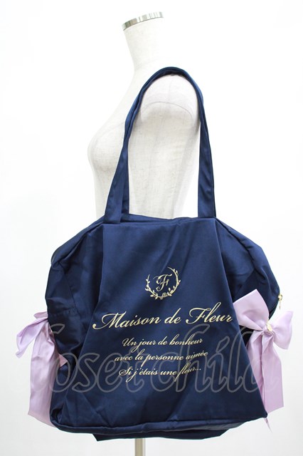Maison de FLEUR / サテンキャリーオンバッグ ネイビー H-25-02-24-055-LO-BG-NS-ZH