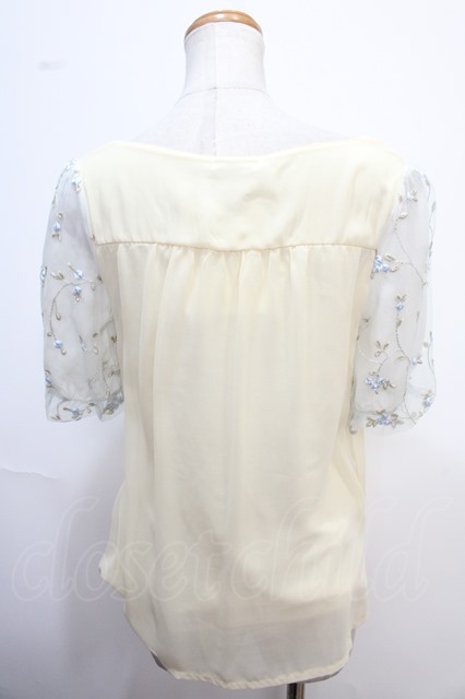 axes femme / お花刺繍チュール袖プルオーバー M イエロー Y-25-02-13-102-AX-TO-SZ-OS