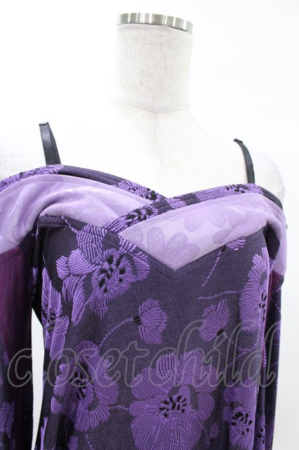 Qutie Frash / オフショル着物チュニック パープル H-25-02-27-1014-QU-TO-KB-ZH