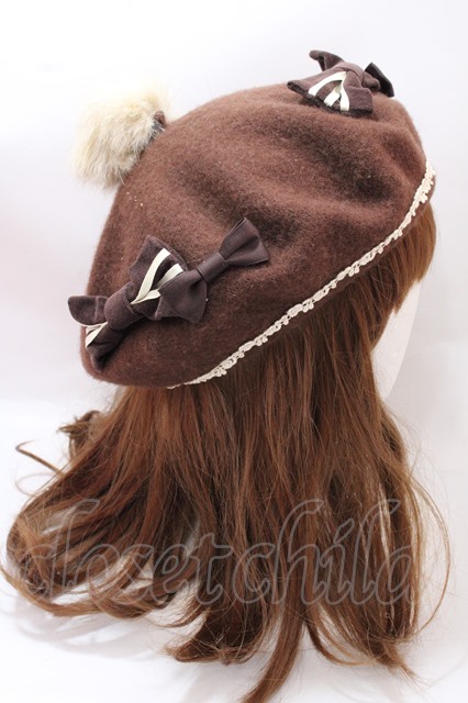 Innocent World / HATストライプリボンベレー帽 ブラウン Y-25-02-16-079-IW-ZA-SZ-ZT421