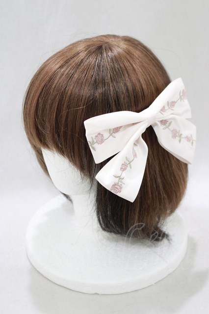 Maison de FLEUR / ローズリボン刺繍リボンバレッタ ピンク H-25-03-03-067-LO-AC-NS-ZH