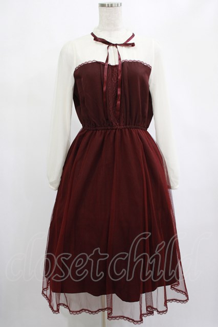 axes femme POETIQUE / チュールデザインワンピース M ボルドー H-25-03-03-019-AX-OP-NS-ZH
