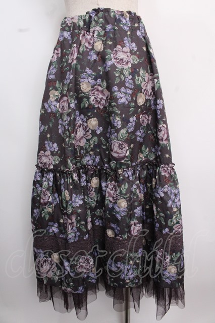 axes femme / ホーリーローズ柄フリルスカート M Dブラウン Y-25-02-18-049-AX-SK-SZ-ZT428