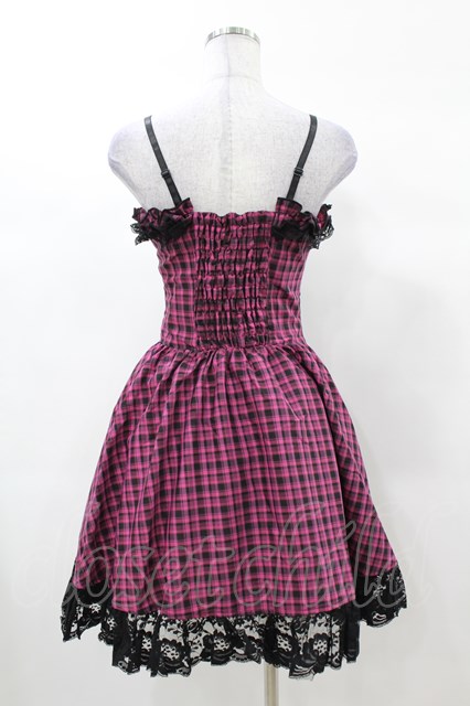 DARK IN LOVE / Rebel pink check sweet cool dress XS ピンク×ブラック H-25-03-08-029-PU-OP-KB-ZH