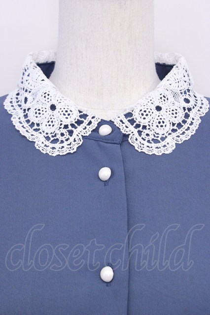 m petit by misako / レース襟プリーツワンピース L 青 T-25-02-21-023-LO-OP-SA-ZI