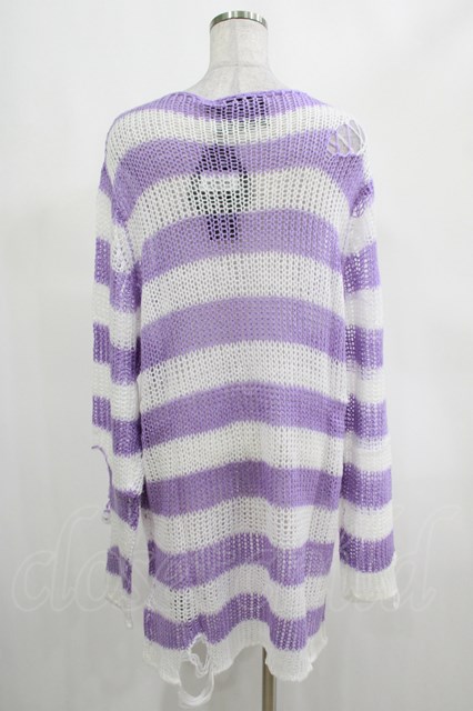 KILL STAR / Viola Knit Sweater M ホワイト×パープル H-25-03-07-1040-SL-TO-KB-ZH