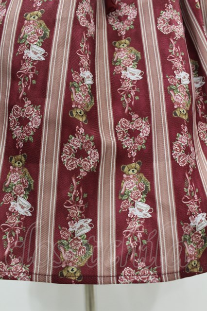 axes femme kawaii / RosyBear柄ジャンパースカート M ワイン H-25-03-11-1036-AX-OP-NS-ZH