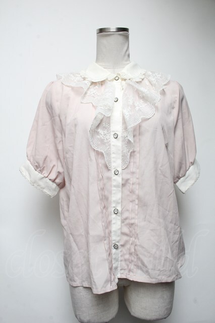 axes femme POETIQUE / レースラッフルフリル半袖ブラウス ピンク S-25-02-27-045-AX-BL-AS-ZS
