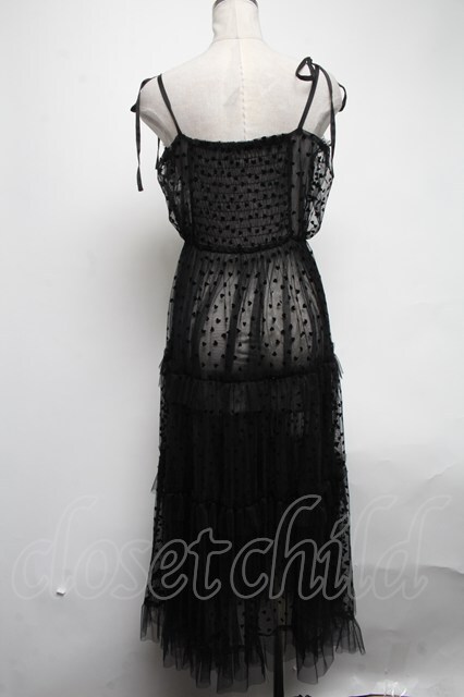 axes femme / ハートチュールティアードワンピース 黒 S-25-02-27-074-AX-OP-HR-ZS