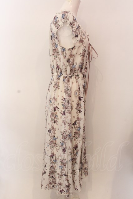 axes femme / パピヨンローズ柄編上ワンピース F キナリ O-25-02-28-091-AX-OP-OW-OS
