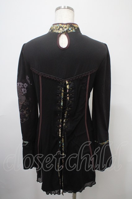 Ozz oneste / メッシュ重ねチャイナチュニック 黒 Y-25-03-10-126-OO-OP-SZ-ZY