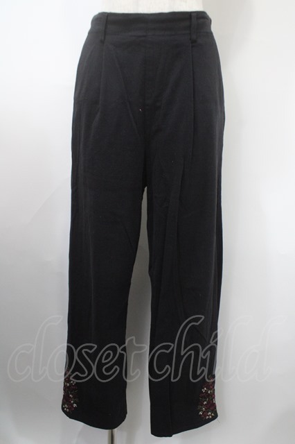 axes femme / 裾刺繍ストレートパンツ L 黒 Y-25-03-10-141-AX-PA-SZ-ZT340