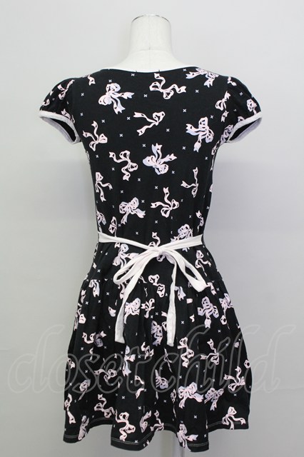 MILK / シルエットRibbonワンピース 黒Xピンク T-25-03-08-027-ML-OP-SA-ZI