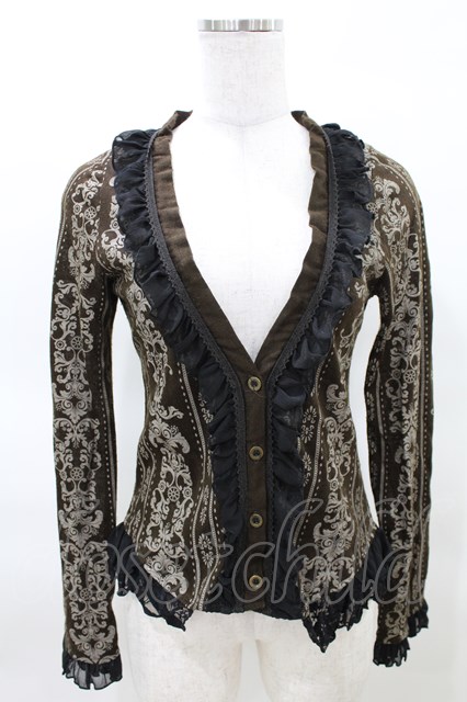 STEAM / プリントフリルカーディガン 茶 H-25-03-22-1029-HN-TO-KB-ZH