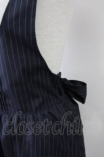 a.r.w / ストライプ&裾刺繍ジャンパースカート ネイビーX白 T-25-03-14-021-LO-OP-SA-ZT