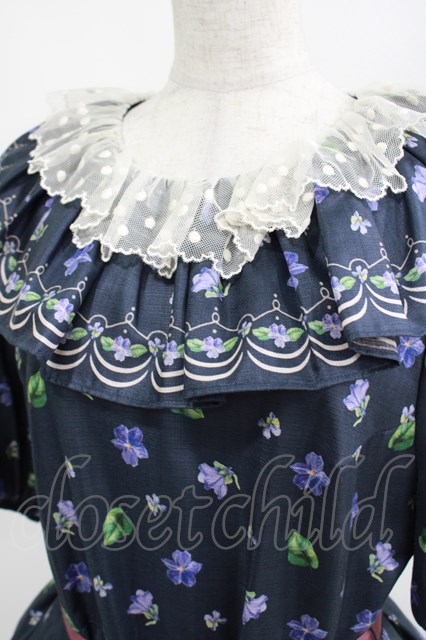 Leur Getter / Elegant Flower袖付きワンピース L(トールサイズ) ネイビー H-25-03-29-006-LU-OP-KB-ZH
