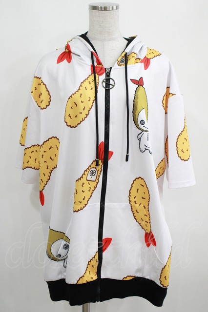 NieR Clothing / 総柄ZIP半袖パーカー 白 H-25-03-31-041-PU-TO-KB-ZH
