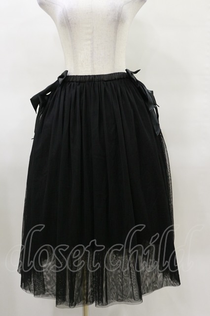 Maison de FLEUR / サイドリボンチュールスカート Free ブラック H-25-03-26-047-LO-SK-NS-ZH