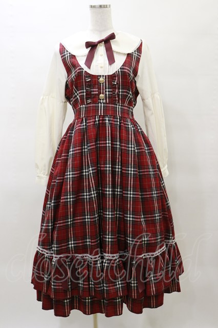 axes femme POETIQUE / チェックフリルレディワンピース M ワイン H-25-03-29-1075-AX-OP-NS-ZH