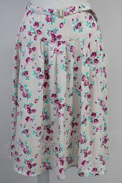 an another angelus / ローズ総柄スカート アイボリーXピンク T-25-03-19-029-CA-SK-HD-ZT375