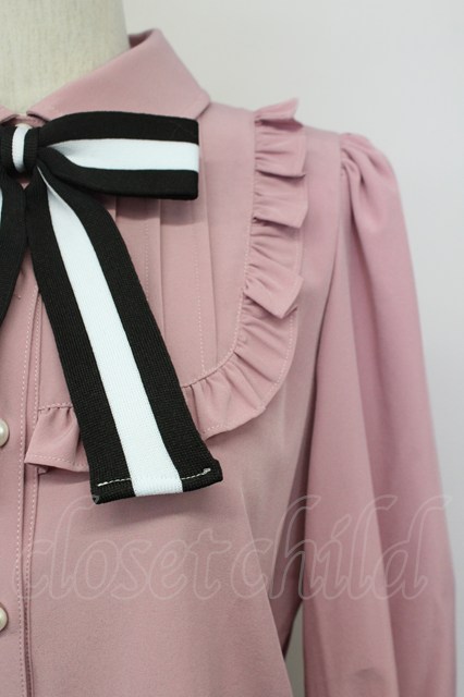Ank Rouge / 配色リボンブラウス M ピンク T-25-03-20-003-CA-BL-SA-ZT