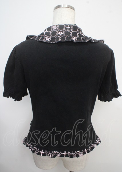PUTUMAYO / 襟プリント半袖カーデ 黒 Y-25-03-23-012-PT-TO-SZ-ZY