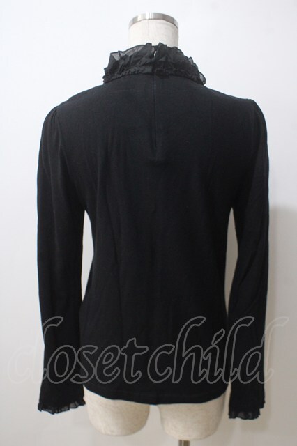 Jane Marple / フリルハイネックカットソー M 黒 Y-25-06-26-084-JM-TO-SZ-ZT074