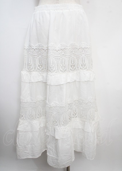 axes femme NOSTALGIE / コットンティアードスカート M 白 Y-25-03-22-123-AX-SK-SZ-ZY