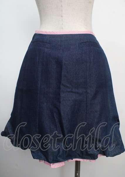 Jane Marple / デニム×ギンガムチェックのリバーシブルスカート M インディゴ×ピンク Y-25-03-22-132-JM-SK-SZ-ZY