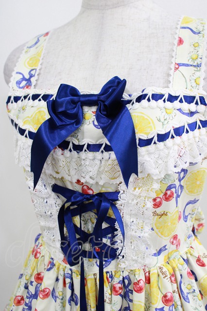 BABY,THE STARS SHINE BRIGHT / Cheerful Lemon柄ジャンパースカートI Free 生成り×紺 H-25-04-02-001-BA-OP-NS-ZH