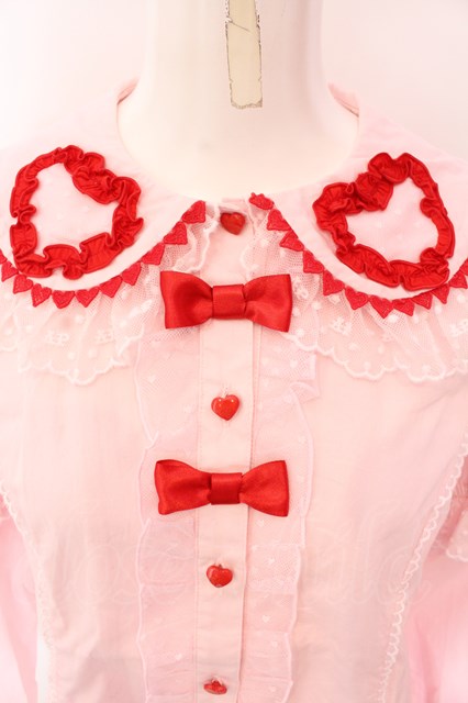 Angelic Pretty / Frill Heart付け袖ブラウス ピンク×アカ O-25-03-25-035-AP-BL-IG-OS